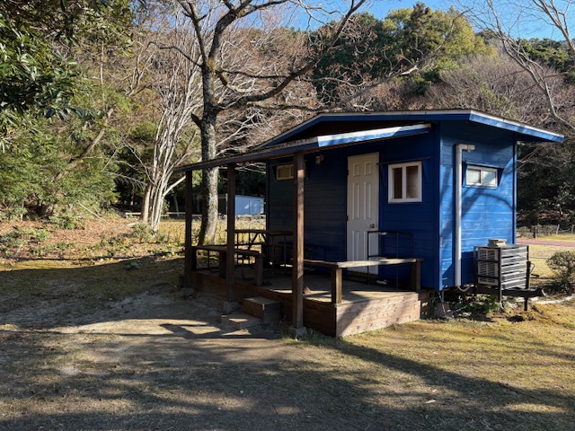 ログキャビンからは海と山が見えるロケーションで自分だけの時間を過ごせます。