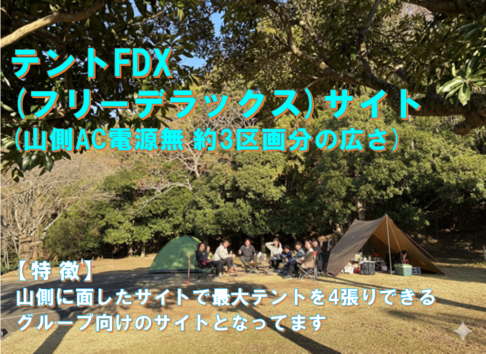 テントサイトは4つのタイプとフリーサイトがあり、全てのサイトがセンターハウスと炊事場の周辺に位置しています。 ペットと一緒に楽しめるエリアもございます。是非ご利用ください。